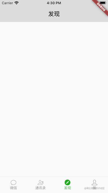 这个方便我们开发调试这个发现页面,我们开发原生 APP 的时候也经常会这么干。直接将 rootPage.dart 里的 _currentIndex 设置为 2 就 OK 了,这个不用多说