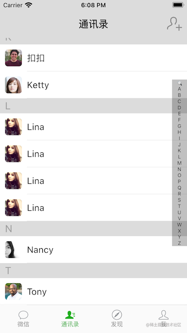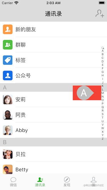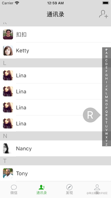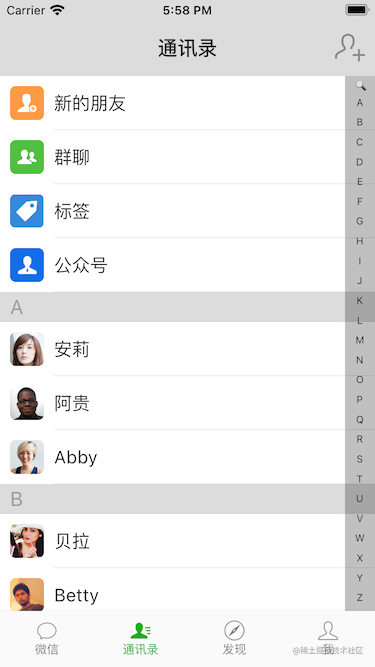 上篇文章,我们已经完成了通讯录的列表。这篇文章介绍完成通讯录右侧的索引条的功能。