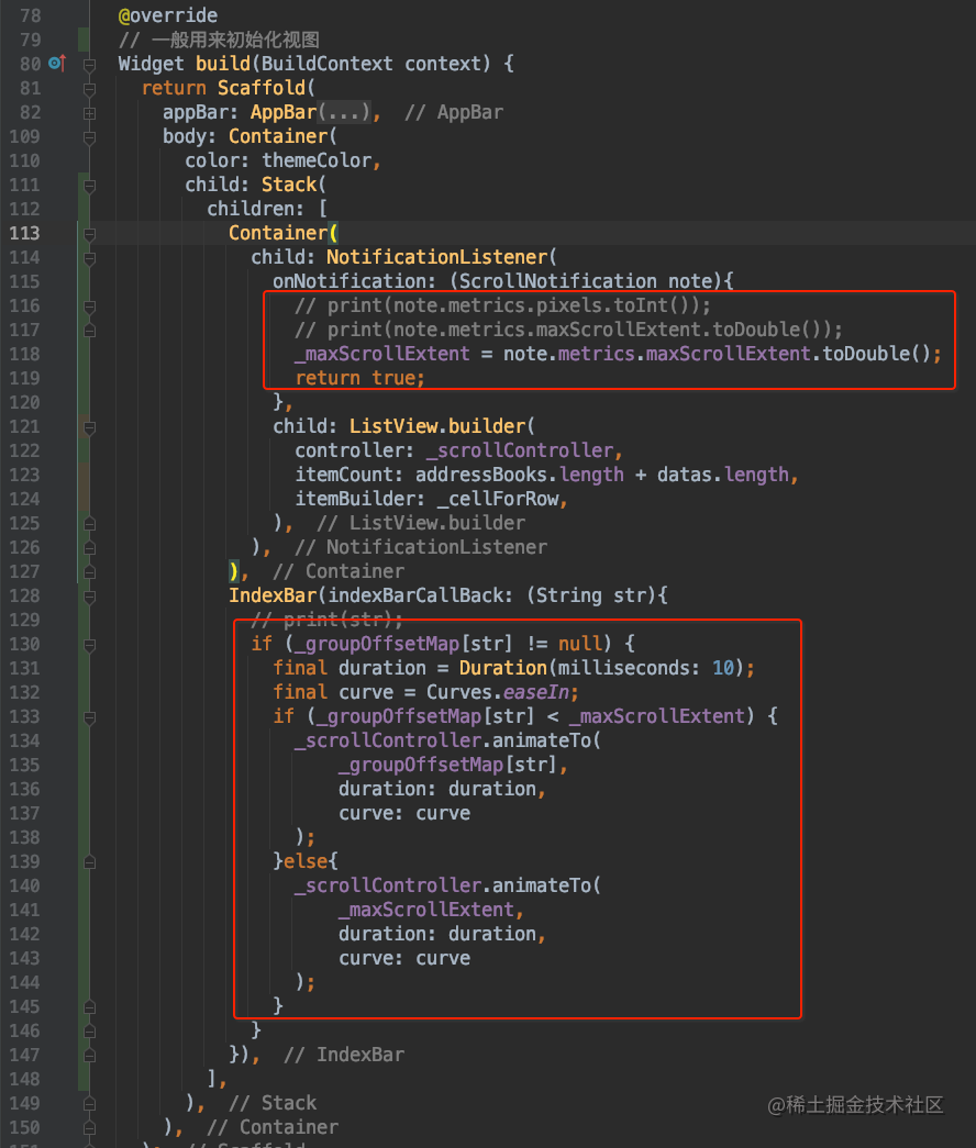 将 _maxScrollExtent 定义为一个属性就好了。需要注意的是并不能给初始值为 0,否则没有滚动 ListView 之前,使用 IndexBar 就无法滚动 ListView 了。